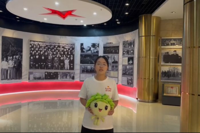 (圖2:實(shí)踐隊(duì)于鄧子恢紀(jì)念館錄制雙語視頻)