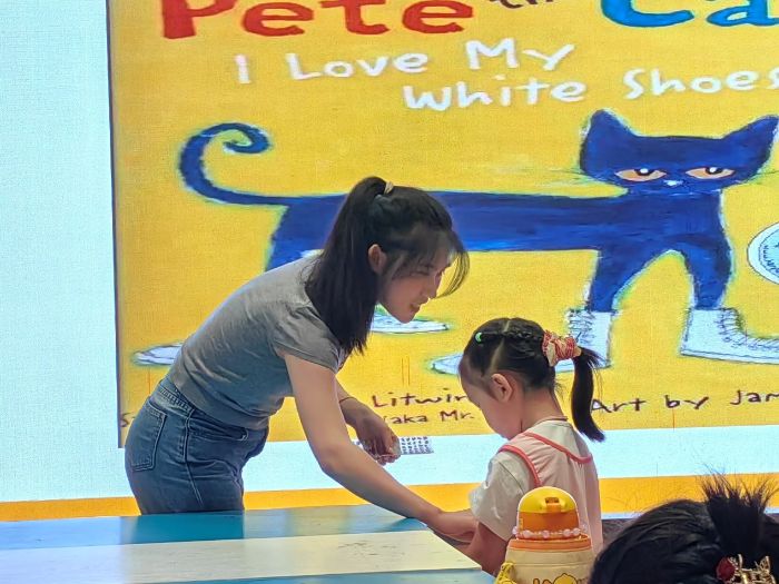 走進(jìn)蘇州圖書館北館少兒區(qū),淺藍(lán)色的主調(diào)營(yíng)造出寧?kù)o又活潑的氛圍:書架上整齊排列著色彩斑斕的英語(yǔ)繪本與立體書,陽(yáng)光透過(guò)落地窗,在鋪著軟墊的閱讀角投下斑駁光影。為了讓活動(dòng)更貼合少兒心理,團(tuán)隊(duì)提前與圖書館工作人員反復(fù)確認(rèn)場(chǎng)地布置細(xì)節(jié),從繪本的篩選到互動(dòng)環(huán)節(jié)的設(shè)計(jì),都經(jīng)過(guò)了多輪打磨??鐚I(yè)的協(xié)作,讓活動(dòng)方案既保留了英語(yǔ)學(xué)習(xí)的專業(yè)性,又充滿了符合少兒認(rèn)知特點(diǎn)的創(chuàng)意,為后續(xù)實(shí)踐打下了扎實(shí)基礎(chǔ)。