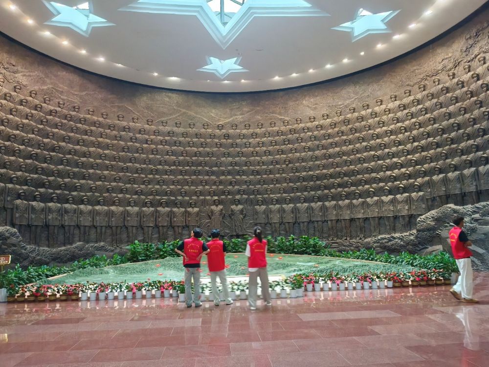 展廳內(nèi),實(shí)踐團(tuán)成員自發(fā)圍站在歷史照片前。老照片里的戰(zhàn)斗場(chǎng)景、革命先輩影像,瞬間拉回烽火歲月。醫(yī)學(xué)檢驗(yàn)技術(shù)專業(yè)的鄭一鳴同學(xué)看著紅軍醫(yī)療救護(hù)隊(duì)的照片感嘆的是:“條件這么艱苦,他們靠信念守護(hù)戰(zhàn)友生命!”實(shí)踐成員結(jié)合專業(yè)熱烈討論,從革命時(shí)期醫(yī)療物資匱乏的困境,延伸到先輩們?nèi)绾斡弥腔劬戎蝹麊T,讓紅色歷史與專業(yè)認(rèn)知深度交融,在交流中觸摸信仰的力量。環(huán)形雕塑墻前,學(xué)生們放慢腳步。密密麻麻的英雄群像與頂面五角星呼應(yīng),腳下地理模型鋪滿紅花。有人輕輕觸摸雕塑邊緣,有人低頭默念英雄名字,在莊嚴(yán)肅穆里,感受信仰分量;“永遠(yuǎn)跟著共產(chǎn)黨走”的紅色橫幅下,大家駐足沉思。學(xué)生會(huì)干部吳昊洋坦言:“先輩用熱血踐行承諾,我們醫(yī)學(xué)生要以專業(yè)報(bào)國(guó),把紅色信仰融入救死扶傷使命!”這場(chǎng)“行走課堂”,讓紅色基因真正走進(jìn)學(xué)生心里,當(dāng)青春腳步與革命歷史同頻,信仰火種,正在新一代醫(yī)學(xué)生心中熾熱燃燒。