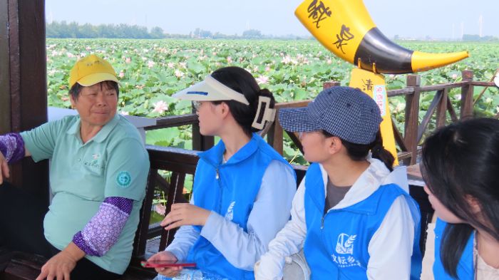 “春賞菜花,夏賞荷花,秋賞菊花,冬賞蘆花”是泰州興化的四季旅行攻略。實(shí)踐團(tuán)前往調(diào)研的夏季正是賞荷的好時(shí)節(jié)。萬(wàn)畝荷塘景區(qū)位于興化市千垛鎮(zhèn)境內(nèi),核心景區(qū)面積達(dá)1200畝,是國(guó)家3A級(jí)旅游景區(qū)。近年來(lái),興化市修繕了相關(guān)基礎(chǔ)設(shè)施,同時(shí)增設(shè)以“一鷺蓮升”為主題的兩處網(wǎng)紅打卡點(diǎn),使景區(qū)的旅游體驗(yàn)全面升級(jí)。