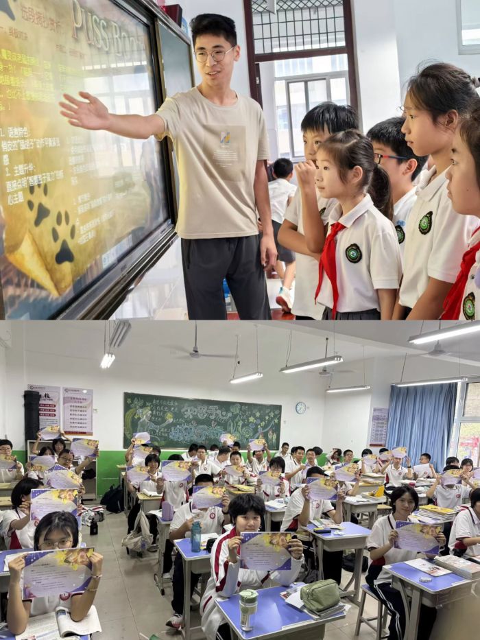 南京校園里的閱讀火種,很快隨實(shí)踐團(tuán)成員的腳步蔓延至全國。在山東東營勝利花苑學(xué)校,趙明洋同學(xué)帶著《穿靴子的貓》與孩子們共讀,引導(dǎo)觀察插圖細(xì)節(jié)、討論故事情節(jié),讓課堂成為感受書籍魅力的樂園;河北邯鄲叢臺實(shí)驗(yàn)學(xué)校內(nèi),馮柯佳同學(xué)以《小王子》為紐帶,從創(chuàng)作背景引入,鼓勵孩子們分享閱讀感受,讓 “書韻筑夢” 的力量在互動中傳遞。