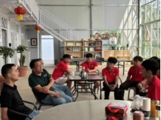 圖為工作人員為實踐團隊講述當?shù)剞r(nóng)業(yè)發(fā)展情況