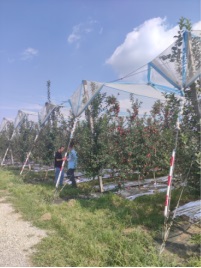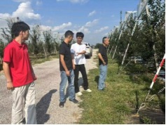圖為示范站負責人向?qū)嵺`團隊介紹當?shù)氐奶O果