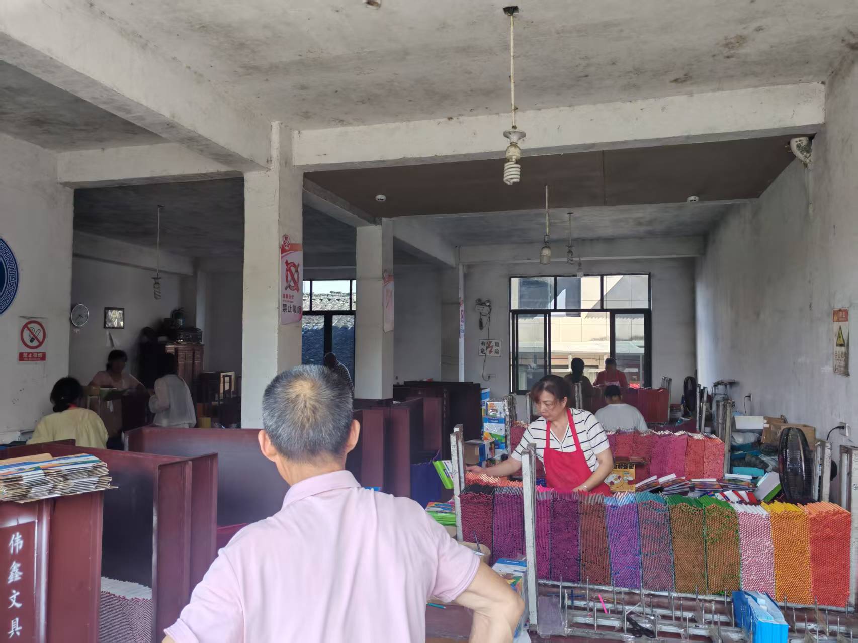 和睦鄰里,共赴富裕據(jù)工坊負(fù)責(zé)人郭家珍介紹,她腿腳不便,不便外出打工,先前只能在家中幫忙農(nóng)活、家務(wù)。10年前,恰逢附近彩鉛廠提出“來(lái)料加工”的項(xiàng)目。懷著帶領(lǐng)鄰舍朋友共同致富、解決周邊留守老人無(wú)事可做的困境、緩解經(jīng)濟(jì)收入壓力的想法,她毅然承接下了這個(gè)項(xiàng)目。她說(shuō),工坊工作沒(méi)有固定的工作時(shí)間安排,按件計(jì)工資,這樣比外出打工靈活度更高,可以更好處理工作與照顧家庭及日常耕作。在她看來(lái),鄰舍們共同工作、齊心致富便是極大的滿足。