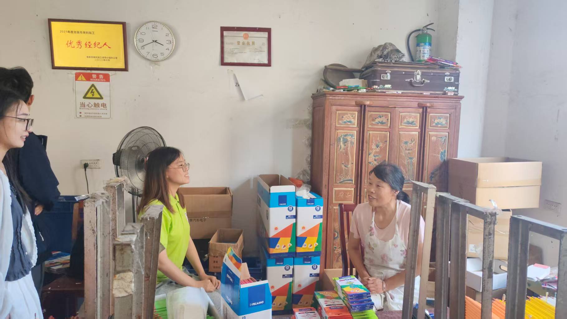 小規(guī)模創(chuàng)造大效益工坊規(guī)模緊致,是由負(fù)責(zé)人住宅一樓改造而來(lái),其中布設(shè)了十余個(gè)工位。工坊的工作氛圍輕松愉快,其中的工人以老人為主,主要工作是彩鉛的分裝與打包。自2015年工坊成立以來(lái),工坊累計(jì)帶動(dòng)留守婦女、陪讀媽媽等20余人就業(yè),年發(fā)放加工費(fèi)27萬(wàn)余元,幫助工坊工人人均年增收1.5萬(wàn)元。負(fù)責(zé)人郭家珍女士也因其帶動(dòng)鄰里創(chuàng)收的突出貢獻(xiàn),獲評(píng)2021龍泉市來(lái)料加工優(yōu)秀經(jīng)紀(jì)人稱號(hào)。