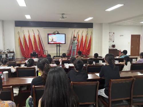 主題宣講伊始,團(tuán)隊(duì)成員通過精心制作的PPT,以圖文并茂的方式向孩子們講述了全民族抗戰(zhàn)的歷史。長(zhǎng)城、橄欖枝、勝利之門等象征元素躍然屏幕,雞毛信、軍民互助等抗戰(zhàn)故事娓娓道來。“戰(zhàn)士們躲在堡壘里冷不冷?”“雞毛信為什么要插雞毛?”過程中,孩子們?nèi)褙炞?,在積極的提問互動(dòng)中逐步理解了“眾志成城”的民族精神和“珍愛和平”的深刻意義。團(tuán)隊(duì)成員用生動(dòng)的講解和鮮活的案例,將厚重的歷史轉(zhuǎn)化為孩子們更易產(chǎn)生興趣的內(nèi)容,讓抗戰(zhàn)精神在他們心中悄然生根。