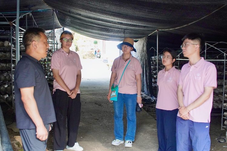 隨后,實(shí)踐隊員參觀了店坊河村的食用菌種植基地?;赜烧y(tǒng)一建設(shè),大棚整齊排列,村民可通過繳納租金方式進(jìn)行承包。據(jù)魏書記介紹,食用菌生長期間需嚴(yán)格控溫,每年2月種植,9月采收,產(chǎn)品銷往國內(nèi)外市場。盡管近年來行情有所下滑,但依托較多的大棚資源和較低的人工成本,村民年均仍可實(shí)現(xiàn)數(shù)萬元收益。同時,該產(chǎn)業(yè)吸納了大量勞動力,采摘環(huán)節(jié)老少皆宜,極大地拓寬了村民的就業(yè)渠道。