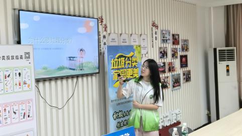 圖為歐芮講解垃圾分類的原因 王逸威 供圖