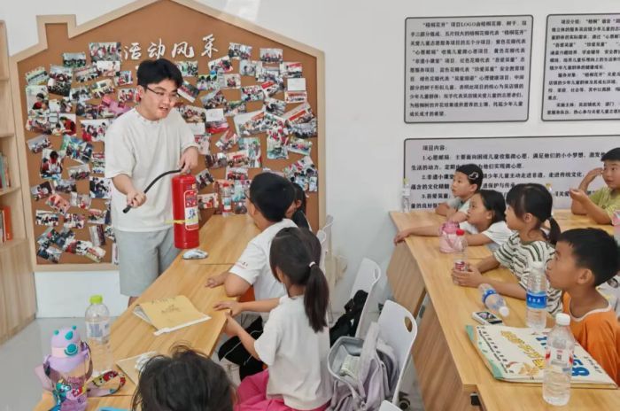 生活技能:賦能終身成長(zhǎng)。當(dāng)紅色教育的余韻仍在心間回蕩,志愿者們已帶著卡通課件走進(jìn)生活技能課堂。衛(wèi)生課上,志愿者用卡通課件講解食品安全,從“營(yíng)養(yǎng)搭配”到“識(shí)別變質(zhì)食品”;自護(hù)環(huán)節(jié)中,滅火器的實(shí)操演示引發(fā)陣陣驚嘆,孩子們爭(zhēng)先恐后地提問(wèn),臉上寫(xiě)滿掌握技能的成就感。這些課程設(shè)計(jì)延續(xù)了支教團(tuán)“知識(shí)傳遞+能力培養(yǎng)”的雙線模式,讓教育真正融入生活。