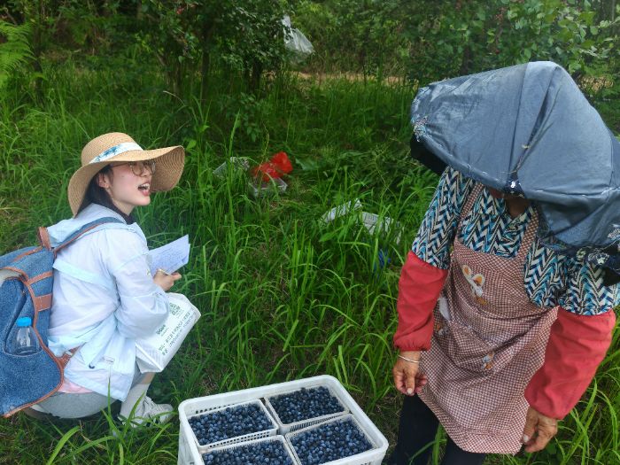 走訪過程中,隊員們深入藍(lán)莓種植基地,與農(nóng)戶面對面交談,細(xì)致詢問他們在生產(chǎn)中遇到的實際困難以及在日常管理中遇到的技術(shù)難題,如病蟲害防治、土壤肥力保持等。龍山鎮(zhèn)一位農(nóng)戶坦言:“去年雨水偏多,不僅藍(lán)莓減產(chǎn),收購價也跌了不少,收入受到很大影響。”