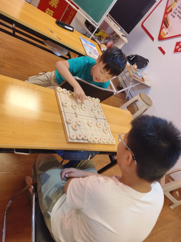 最后的象棋博弈環(huán)節(jié)中,孩子們不但彼此之間玩得開(kāi)心,也潛移默化中培養(yǎng)了“責(zé)任感”——為每一步選擇承擔(dān)后果,“邊界感”,與“包容”——友誼第一比賽第二,勝不驕敗不餒。