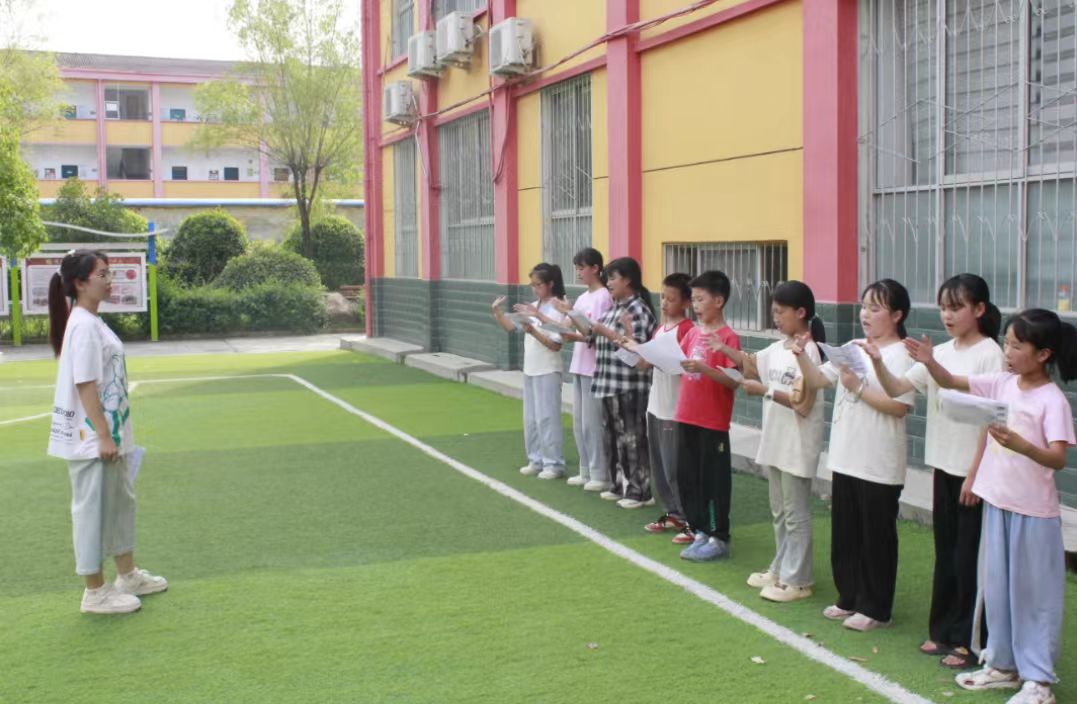 方音為根 普語為翼在三門村小學(xué),實踐團以“講普通話 寫規(guī)范字”為起點,將拼音教學(xué)轉(zhuǎn)化為開啟文化之門的鑰匙。成員們帶領(lǐng)孩子們從《三字經(jīng)》的啟蒙誦讀到《我和我的祖國》的深情詠唱,用標(biāo)準(zhǔn)普通話串聯(lián)中華文脈。此外,實踐團運用“柔性推普”策略,通過繞口令擂臺賽、方言與普通話“互譯游戲”、情景劇排練等趣味活動,讓孩子們在歡笑中自然接納普通話。一位扎著小辮的女孩在課間坦言:“雖然和同學(xué)玩說方言更順口,但老師的普通話也很好聽,我們都想學(xué)普通話。”推廣普通話,并非要替代鄉(xiāng)音,而是讓孩子們在守護方言根脈的同時,也能自信運用普通話連接更廣闊的世界。
