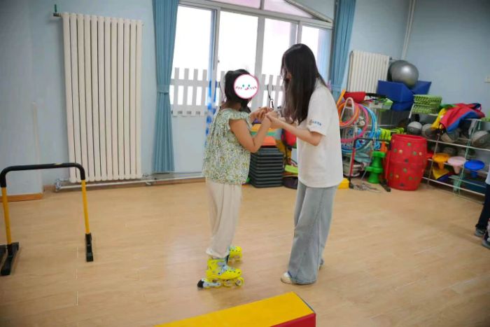 7月28日至8月1日,服務隊持續(xù)在濱海學院特教中心開展服務。隊員們通過一對一課業(yè)輔導、感統(tǒng)訓練、輪滑教學、水槍游戲等活動,耐心協(xié)助教師完成教學任務,密切關注特殊兒童的認知和行為表現(xiàn),在跳繩、啞鈴、跨越障礙等訓練中提升孩子的身體協(xié)調(diào)能力。室內(nèi)自由活動時間里,隊員們陪伴孩子完成鉆石貼畫、共讀圖畫書,在細致互動中培養(yǎng)其專注力和表達能力。此外,隊員們還積極承擔后勤保障、安全看護與應急處理等工作,全面保障每日活動順利開展。
