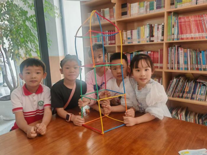 手工課程部分,隊(duì)員以“小吸管搭世界”為主題,帶領(lǐng)孩子們從實(shí)際生活出發(fā),將日常廢棄吸管轉(zhuǎn)化為手工藝品。課上,隊(duì)員鼓勵(lì)學(xué)生發(fā)揮想象力創(chuàng)造個(gè)性化作品,如橋梁、城堡等建筑模型。