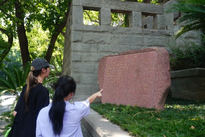 隊(duì)員們在中國民主黨派紀(jì)念碑前觀摩碑文