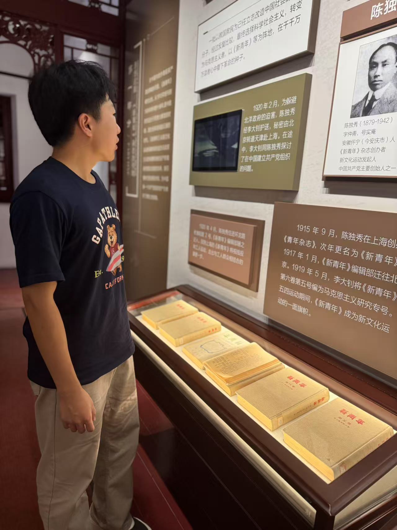 位于上海興業(yè)路76號(hào)(原望志路106號(hào))的中共一大會(huì)址,青磚黛瓦,莊嚴(yán)肅穆。這座典型的上海石庫門建筑,在繁華的現(xiàn)代都市中靜靜訴說著百年前的波瀾壯闊。實(shí)踐團(tuán)隊(duì)的隊(duì)員們放緩腳步,屏息凝神,依次參觀了“前仆后繼、救亡圖存”、“民眾覺醒、主義抉擇”、“早期組織、星火初燃”、“開天辟地、日出東方”、“砥礪前行、光輝歷程”等展廳。