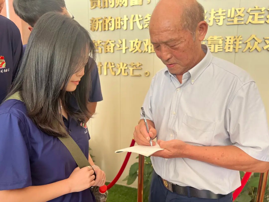 圖為巾幗英杰曾志的孫子石文龍為實踐團(tuán)成員寄語