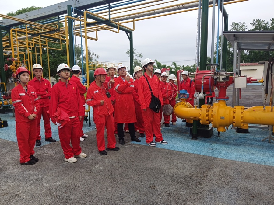走進現(xiàn)代氣田:平落集氣中心站的數(shù)字化實踐實踐第二階段,隊員們和指導老師在邛崍作業(yè)區(qū)平落集氣站開展跟崗實習。走進平落集氣中心站,撲面而來的是現(xiàn)代化工業(yè)的氣息,智能化巡檢機器人沿著既定軌道緩緩移動,處處彰顯著現(xiàn)代化油氣工業(yè)的科技魅力。隊員們跟隨技術人員的講解,從進站安檢開始,逐步了解天然氣處理的完整流程,在高含硫天然氣處理區(qū),先進的脫硫裝置正在高效運轉,在中控室里,巨大的電子屏上閃爍著整個集輸管網(wǎng)的實時數(shù)據(jù),值班技術人員指著智能系統(tǒng)解釋道:“這些跳動的數(shù)字就是管網(wǎng)的'生命體征',任何一個參數(shù)異常,系統(tǒng)都會自動預警”。短暫的跟崗實習隊員們收獲巨大,站內工程師和技術人員嚴謹?shù)墓ぷ髯黠L深刻影響了同學們,實踐隊員海洋油氣工程專業(yè)2024級本科生鄧旭說到:“作為一名大一學生,自己在學校尚未接觸到很多專業(yè)知識,這次實踐讓我們能夠深入油田生產一線,近距離接觸生產設施,為日后專業(yè)知識的學習打下了堅實的基礎。”