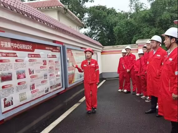 隊員們剛剛進(jìn)入工作站場,熱心的現(xiàn)場工作人員就為大家介紹了平落集氣站多年來形成的獨(dú)特文化。扎根川西近三十載,站場見證了中國天然氣開發(fā)的歷程:1995年隨平落壩氣田開發(fā)而建,開創(chuàng)川西超深井脫硫先河;2006年擴(kuò)容成為成都經(jīng)濟(jì)圈核心供氣樞紐;2020年轉(zhuǎn)型為智能示范站場。其文化融合石油精神與巴蜀特質(zhì):以“攻堅文化”突破封鎖(首套國產(chǎn)脫硫設(shè)備留存至今);以“安全文化”守護(hù)30年零重大事故;以“生態(tài)文化”實(shí)現(xiàn)氣田與古鎮(zhèn)共生(獲評省級綠色單元);以“社區(qū)紐帶”惠及民眾超萬人次(能源開放日、工匠長廊)。這座龍門山麓崛起的能源堡壘,從戈壁帳篷到智能廠區(qū)的變遷,生動踐行著“為天府送福氣”的使命,成為石油精神與時代交融的豐碑。