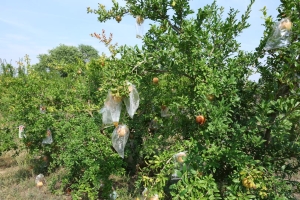 在臨潼區(qū)榮村石榴種植基地,實踐團跟隨當(dāng)?shù)卮迕褡哌M石榴園。村民熱情相迎,引領(lǐng)著實踐團穿梭其中,娓娓道來石榴從種植到銷售的點點滴滴。在村民的介紹中,實踐團了解到了臨潼石榴種植銷售的情況。