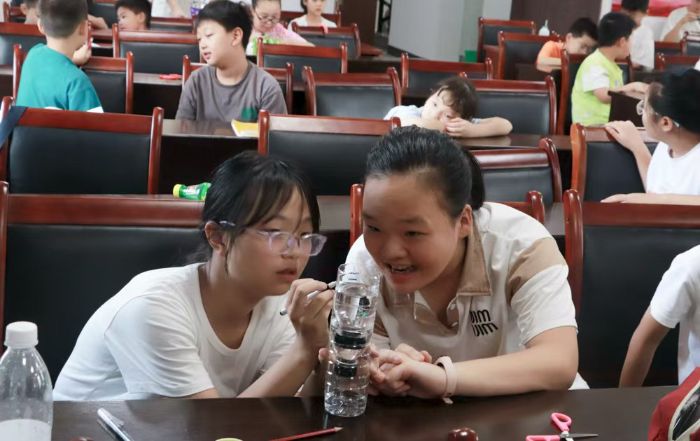 “江河不以水匱,計(jì)時(shí)必以漏刻。”微光團(tuán)隊(duì)以塑料瓶、吸管和刻度紙制作了簡(jiǎn)易水鐘,演示了古代漏刻的等時(shí)性原理。當(dāng)孩子們調(diào)節(jié)水流速度,觀察水位變化與時(shí)間的關(guān)系時(shí),老師借機(jī)科普“節(jié)水灌溉”:“古人用漏刻分配農(nóng)田用水,今天我們也要珍惜每一滴水,像水鐘一樣‘精準(zhǔn)’用水。”孩子們?cè)趯?shí)驗(yàn)中既理解了虹吸原理,更樹立了節(jié)水意識(shí)。有學(xué)生提議:“回家后要把水鐘放在菜園旁,幫爺爺計(jì)時(shí)澆水!”