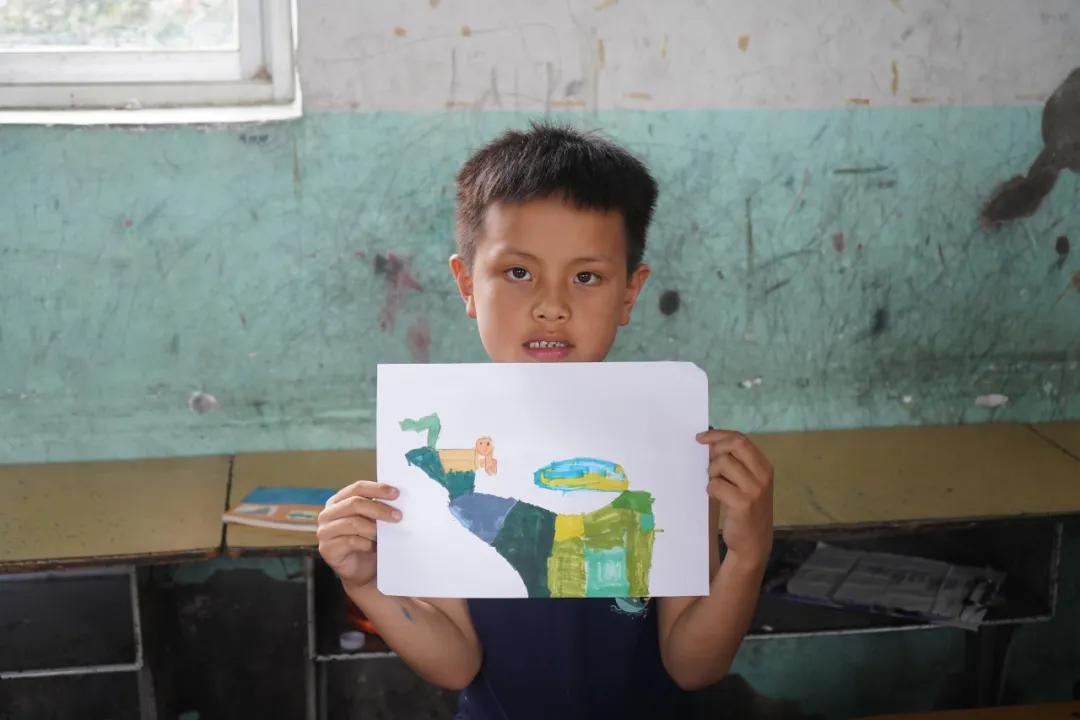“我的夢想” 為主題的繪畫課程上,張慧依引導孩子們暢所欲言,分享自己的夢想。隨后,她手把手教孩子們用畫筆描繪心中的夢想畫面。孩子們在繪畫中