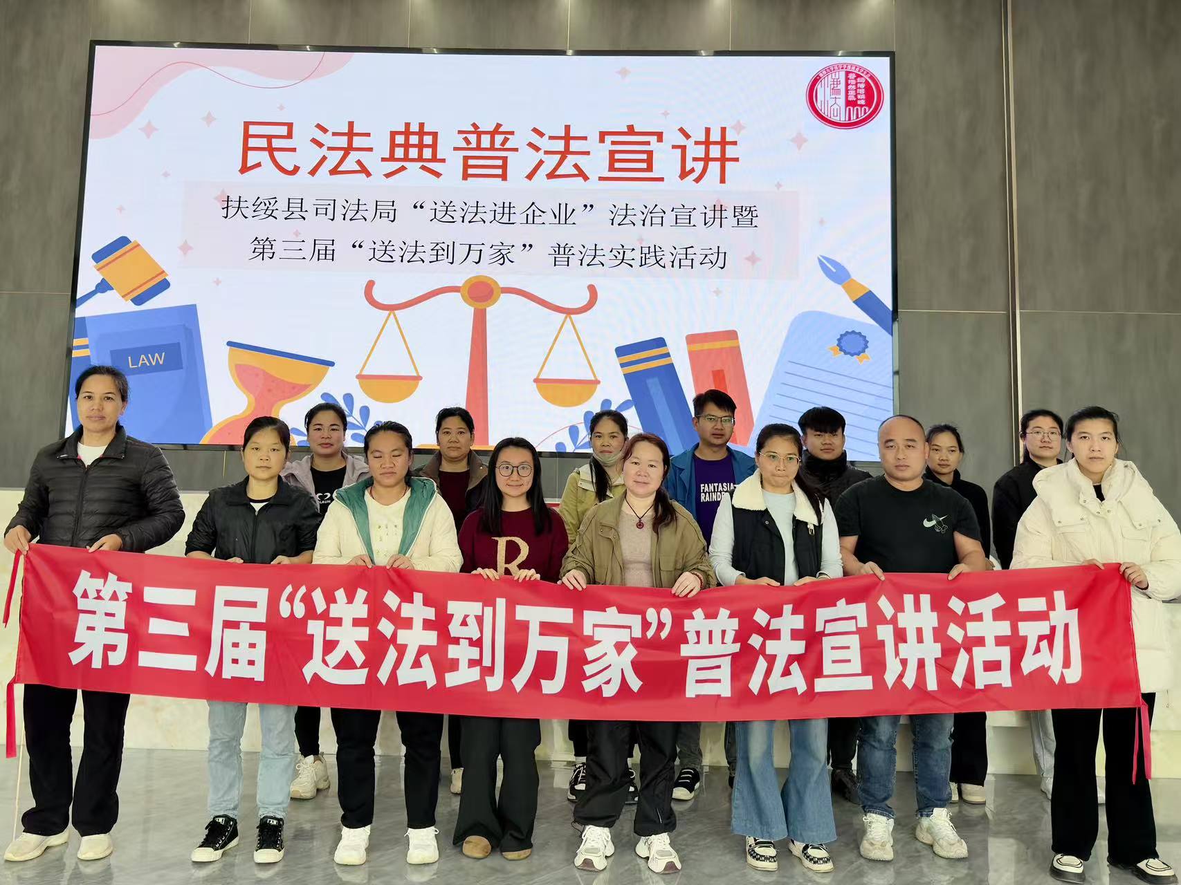 《民法典》是民事權(quán)利的宣言書和保障書,與每個(gè)人的生活息息相關(guān)。1月29日,為提升基層群眾“做守法公民”意識(shí)、增進(jìn)企業(yè)職工對(duì)《民法典》的理解,作為“普法宣講員”,湘潭大學(xué)學(xué)生朱思潔攜手扶綏縣司法局,走進(jìn)廣西向東電子科技有限公司,開展“學(xué)好用好民法,典亮精彩人生”——扶綏縣司法局“送法進(jìn)企業(yè)”暨第三屆“送法到萬家”普法宣講活動(dòng)。