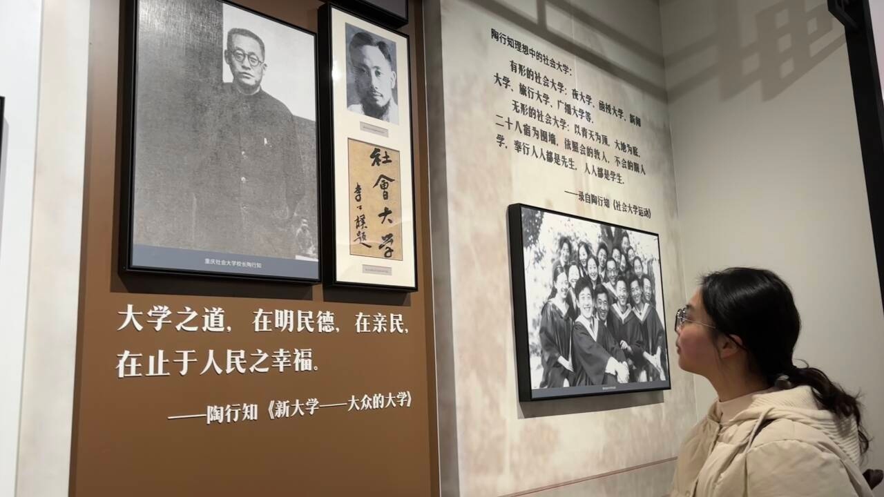 重慶是抗戰(zhàn)時期陶行知先生深耕教育、踐行救國理想的重要陣地,團(tuán)隊成員走訪重慶社會大學(xué)舊址,探尋特殊歷史時期的教育探索。師資匱乏、物資短缺的困境未曾動搖先輩們傳播真理、培育人才的決心。逼仄的房間化作課堂,師生手抄的紙張成為教材,即便身處反動勢力的威脅之下,先輩們?nèi)砸詧远ǖ男叛鐾信e“育人火種”,這讓團(tuán)隊成員對新時代教師的責(zé)任與使命有了更清晰的認(rèn)知。