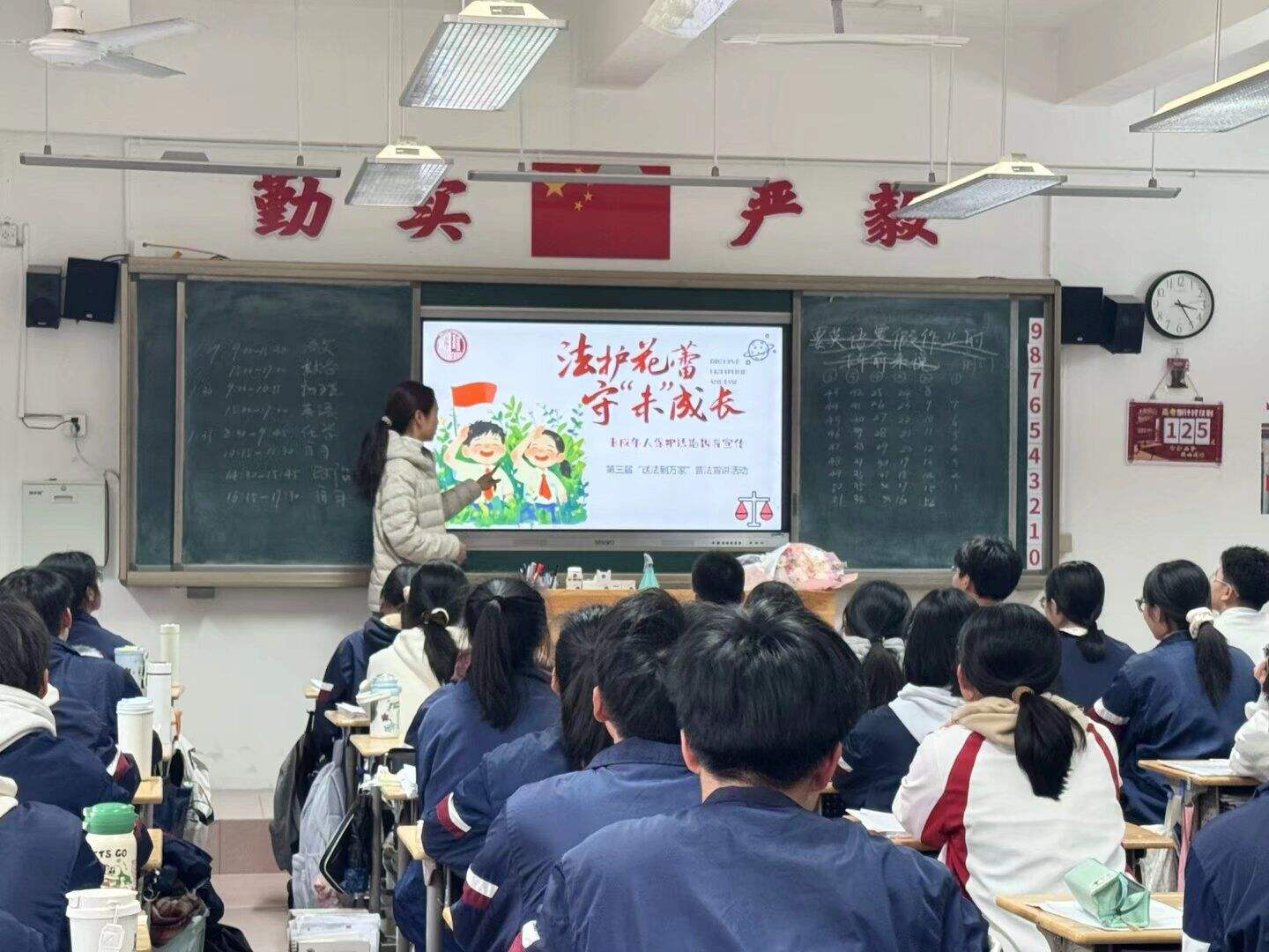 活動(dòng)尾聲,隊(duì)長(zhǎng)汪偉釗總結(jié)本次宣講活動(dòng),感謝了同學(xué)們的積極參與和兩位高三同學(xué)的主動(dòng)互動(dòng)。胡越清老師高度評(píng)價(jià)本次活動(dòng),認(rèn)為宣講內(nèi)容精準(zhǔn)對(duì)接青少年需求,實(shí)用性強(qiáng)、感染力足,并提倡今后能有更多此類法治宣傳活動(dòng)走進(jìn)校園,為學(xué)生成長(zhǎng)保駕護(hù)航。