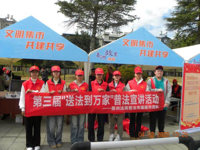 新春伊始,萬象更新。為深入貫徹落實黨的二十大關于“全面推進依法治國,推進法治中國建設”的決策部署,積極響應保山市新時代文明實踐中心號召,2026年2月4日,由高校大學生組成的善洲法苑普法志愿服務團隊走進云南省保山市施甸縣姚關鎮(zhèn),參與“我們的節(jié)日·春節(jié)”文明實踐暨文化科技衛(wèi)生“三下鄉(xiāng)”集中示范活動,開展了一場主題鮮明、形式多樣、貼近民生的普法宣傳教育活動,用青春力量助力基層法治建設。