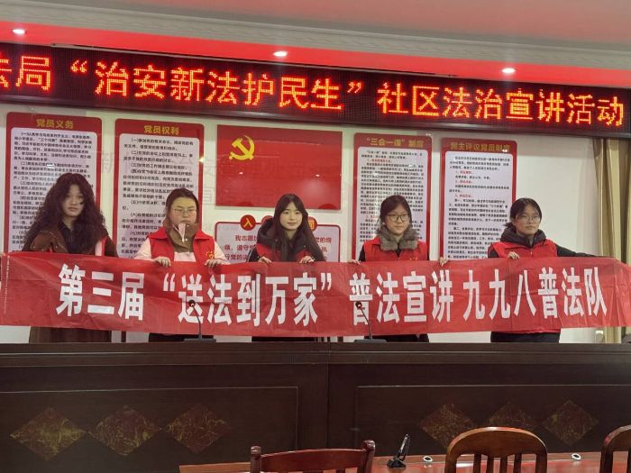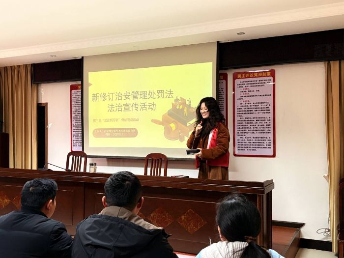 九九八普法隊訊(通訊員 李慧 嚴青秀 黃淑琪)為深入貫徹《中華人民共和國治安管理處罰法》,切實提升社區(qū)居民的法治素養(yǎng)與自我保護意識,2月5日,湘潭大學“送法到萬家”普法宣傳志愿者團隊走進恩施市五峰山社區(qū),開展“新修訂治安管理處罰法”主題宣講活動。大學生宣講員劉晨璐擔任主講人,為現(xiàn)場社區(qū)居民帶來了一堂生動且實用的法治教育課。
