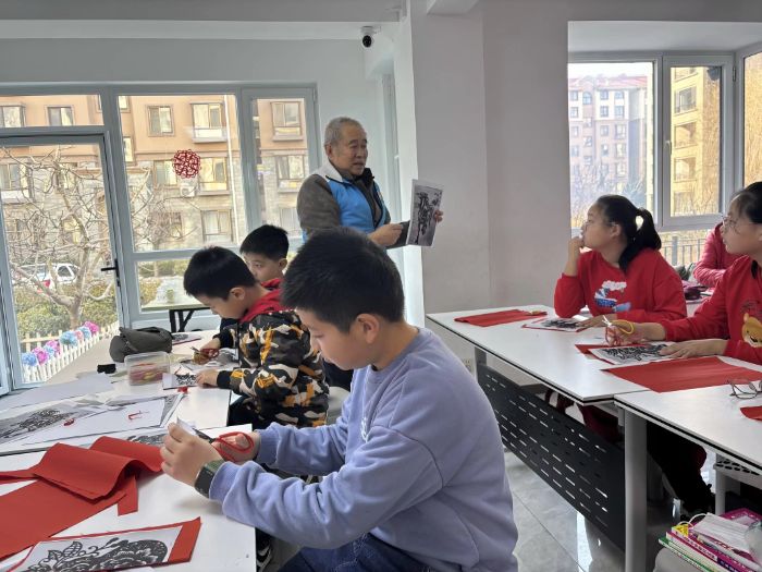 本次活動(dòng)特別邀請(qǐng)榮成市新時(shí)代文明實(shí)踐中心的非遺剪紙老師連建民蒞臨現(xiàn)場(chǎng)教學(xué),居民與工作人員齊聚一堂,在剪刀起落、刻刀游走間親身感受傳統(tǒng)非遺的獨(dú)特魅力,共同迎接新春的喜慶氣象。