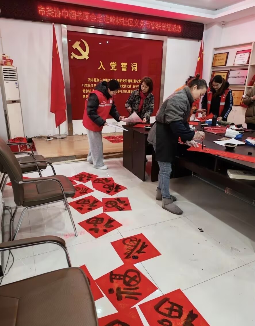 活動伊始,社區(qū)活動室里便熱鬧非凡。數(shù)位書法大家揮毫潑墨,筆走龍蛇間,一副副寓意吉祥的春聯(lián)、一個個蒼勁有力的“福”字躍然紙上。“一帆風順年年好,萬事如意步步高”“春臨大地百花艷,福滿人間萬事興”,紅紙翻飛,墨香飄溢,現(xiàn)場洋溢著濃濃的年味兒。