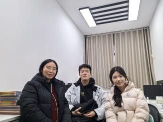 | 團(tuán)隊成員在安陽一中報告廳聽取宣講建議 | 團(tuán)隊成員與高中王老師合影并溝通 |