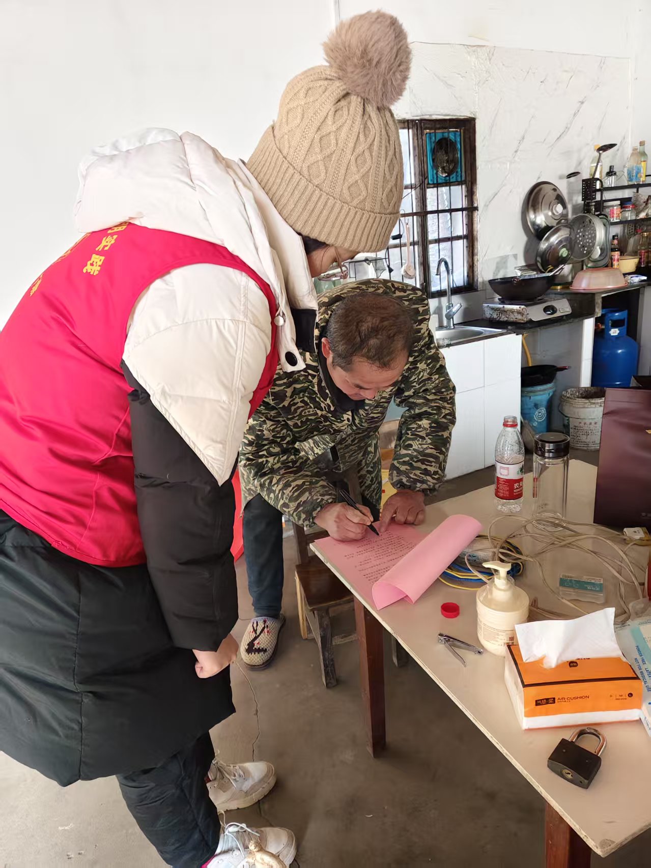 對(duì)于村里那些不識(shí)字、年紀(jì)較大或是行動(dòng)不便的老人,我就會(huì)放慢語(yǔ)速,逐字逐句為他們講解內(nèi)容,幫忙完成相關(guān)確認(rèn),確保每一位村民都能了解安全知識(shí)。
