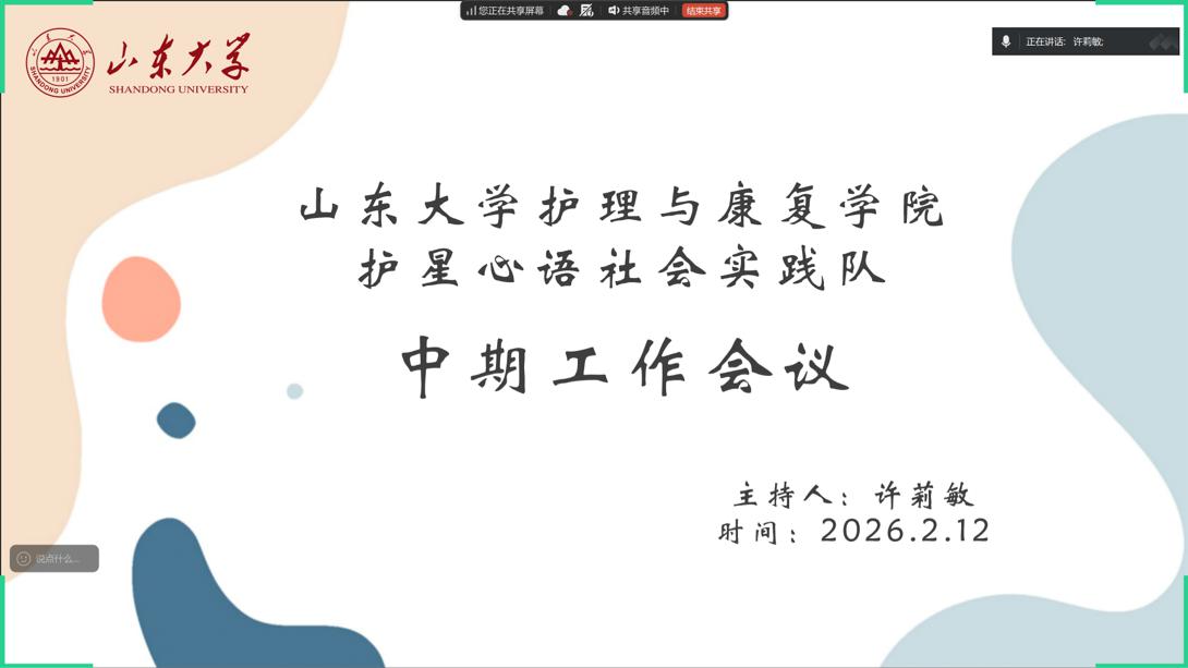 2026年2月13日,護(hù)星心語社會(huì)實(shí)踐隊(duì)召開中期工作會(huì)議,圍繞孤獨(dú)癥兒童家長一站式心理支持與賦能平臺(tái)建設(shè)進(jìn)行全面部署。本次會(huì)議立足公益初心與社會(huì)使命,聚焦服務(wù)優(yōu)化、需求調(diào)研、成果展示等關(guān)鍵工作,明確下一階段發(fā)展方向,致力于以更專業(yè)、更溫暖、更高效的公益行動(dòng),為孤獨(dú)癥兒童家長提供全方位心理支持與成長賦能,用實(shí)際行動(dòng)關(guān)愛“星星的孩子”及其家庭。