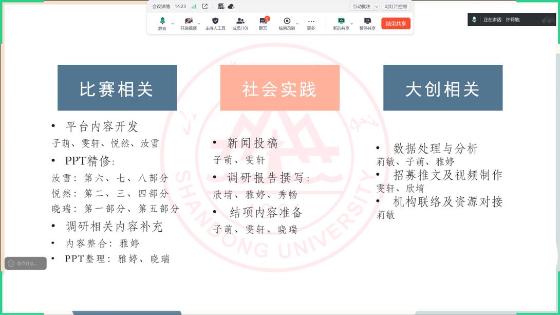 會(huì)議伊始對前期完成的工作進(jìn)行了總結(jié),并對近期重點(diǎn)任務(wù)進(jìn)行了安排部署,以推動(dòng)各項(xiàng)公益工作穩(wěn)步落地。團(tuán)隊(duì)將盡快完成更全面的大創(chuàng)研究對象招募宣傳方案,以生動(dòng)直觀的形式展現(xiàn)項(xiàng)目使命與內(nèi)容,提升對外溝通與合作對接效率,讓更多愛心力量關(guān)注并參與到孤獨(dú)癥家庭關(guān)愛行動(dòng)中。同時(shí),同步完成數(shù)據(jù)的初步處理工作,為深度研究與服務(wù)優(yōu)化做好鋪墊。