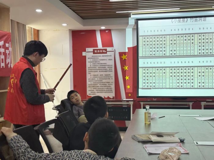 破冰活動(dòng)過后,特色課程精彩啟幕。2 月 24 日下午 2 點(diǎn),吳景添老師帶來了一節(jié)生動(dòng)的民樂啟迪課,帶領(lǐng)孩子們走進(jìn)悠揚(yáng)的民樂世界,探尋笛子的獨(dú)特魅力。課堂上,老師摒棄枯燥的理論講解,將豐富多彩的知識(shí)講解與現(xiàn)場(chǎng)實(shí)踐表演相結(jié)合,悠揚(yáng)的笛音從指尖流淌而出,瞬間吸引了孩子們的全部注意力。在老師的耐心指導(dǎo)下,孩子們紛紛拿起笛子嘗試吹奏,從生疏摸索到慢慢吹響,每一個(gè)小小的進(jìn)步都讓孩子們充滿成就感。這節(jié)民樂課,讓孩子們?cè)跉g樂中感受民樂的動(dòng)聽與魅力,也讓熱愛民樂的種子在孩子們心中悄然萌芽。