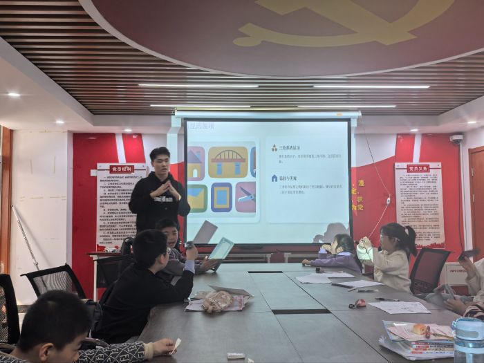 同日下午,孔一凡同學(xué)帶領(lǐng)孩子們走進(jìn)奇妙的數(shù)學(xué)王國,開啟一場(chǎng)探尋三角形秘密的趣味之旅。課堂上,從直角、鈍角、銳角的鮮明特點(diǎn),到神秘的 π 的深層內(nèi)涵;從三角板的規(guī)格形制,到弧度定義的趣味解讀,孔一凡同學(xué)將抽象的數(shù)學(xué)知識(shí)轉(zhuǎn)化為生動(dòng)易懂的講解,讓孩子們發(fā)現(xiàn)數(shù)學(xué)并非枯燥的公式與計(jì)算,而是充滿理趣與奧秘。原本看似 “尖銳” 的三角形,在趣味講解中變得溫情滿滿,孩子們緊跟老師的思路,沉浸在數(shù)學(xué)的奇妙世界里,主動(dòng)思考、積極提問。這場(chǎng)別開生面的數(shù)學(xué)課,不僅讓孩子們收獲了數(shù)學(xué)知識(shí),更讓他們感受到數(shù)學(xué)的獨(dú)特魅力,激發(fā)了對(duì)數(shù)學(xué)學(xué)科的熱愛與探索欲。