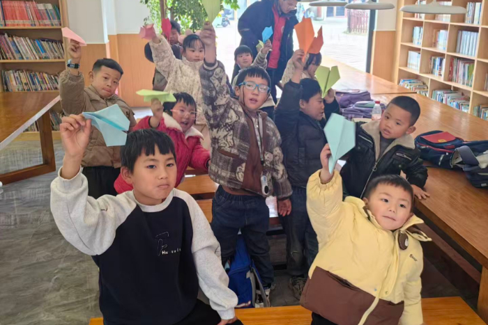 航天航空科普課程則為孩子們插上了科學夢想的翅膀。王老師圍繞航天航空事業(yè)對國家發(fā)展的戰(zhàn)略意義展開講解,用通俗易懂的語言將衛(wèi)星發(fā)射、載人航天等晦澀的專業(yè)知識轉化為生動有趣的科普內容。為了讓孩子們更直觀地感受飛行原理,王老師帶領大家動手折紙飛機,當一只只色彩各異的紙飛機被孩子們高高舉起,他們的眼中都閃爍著對宇宙探索的好奇與向往,航天航空的種子也已在孩子們心中悄然種下。
