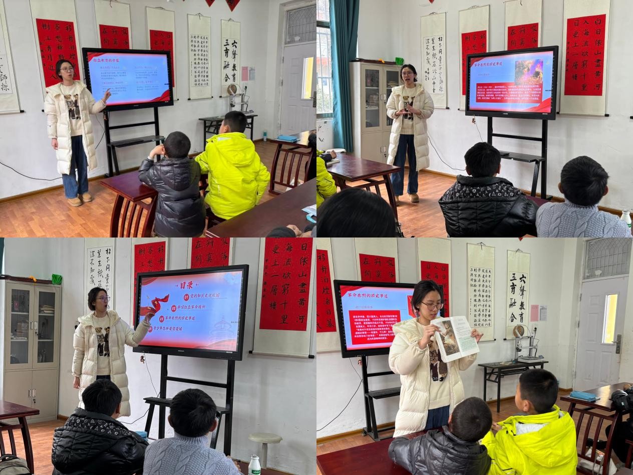 第一堂課為志愿者王儷霏、王丹的紅色政治課。她們用通俗易懂的語言,帶領(lǐng)孩子們學(xué)習(xí)黨的基本知識,講述革命先輩不畏艱險、為國奉獻(xiàn)的感人事跡。從烽火歲月的英雄壯舉,到新時代的奮斗故事,一段段歷史在孩子們心中悄然播下愛國愛黨的種子。課堂上,孩子們認(rèn)真聆聽、積極互動。紅色基因,在無聲中傳承。