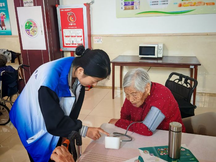圖為志愿者為老人測(cè)量血壓 吳冰語(yǔ)拍攝
