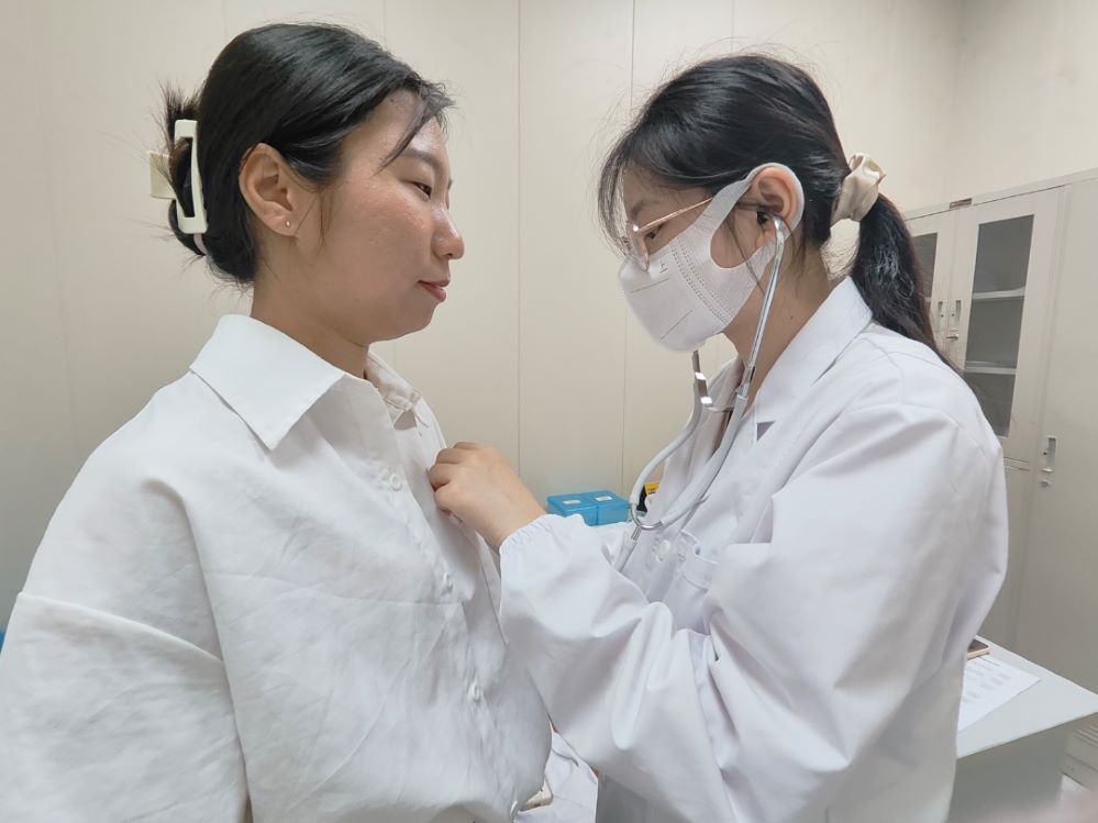 隊(duì)員們互相聽診的過(guò)程。實(shí)踐隊(duì)成員 游麗玲 供圖。