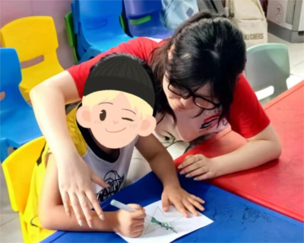 “一閃一閃亮晶晶,滿天都是小星星,掛在天上放光明,好像許多小眼睛。” 課堂伊始,三位志愿者以一首《小星星》歌曲為引,為孩子們營造一個輕松愉悅且濃厚的英語學(xué)習(xí)氛圍。隨后,他們給每個孩子分發(fā)了一張印有五角星圖案的空白紙張并教授孩子們“星星”的中英文。為了培養(yǎng)孩子們的專注力,他們又分發(fā)了各種顏色的畫筆,一對一引導(dǎo)孩子們?yōu)樾切巧仙?br />康復(fù)中心的一位老師真誠地說道,由于每個孩子的情況各不相同,在課堂上他們的表現(xiàn)也呈現(xiàn)出明顯的個體差異,因此也希望社會各界能夠更多地關(guān)注和支持殘疾兒童教育事業(yè),共同為他們的美好未來貢獻(xiàn)力量。
