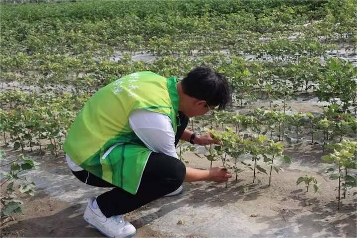星火實(shí)踐小隊(duì)順利開展實(shí)地調(diào)研活動(dòng)來源:星火實(shí)踐小隊(duì)7月6號上午,星火實(shí)踐小隊(duì)在十二團(tuán)十一連農(nóng)戶張福生的56號棉花地里開展實(shí)地調(diào)研活動(dòng)。
