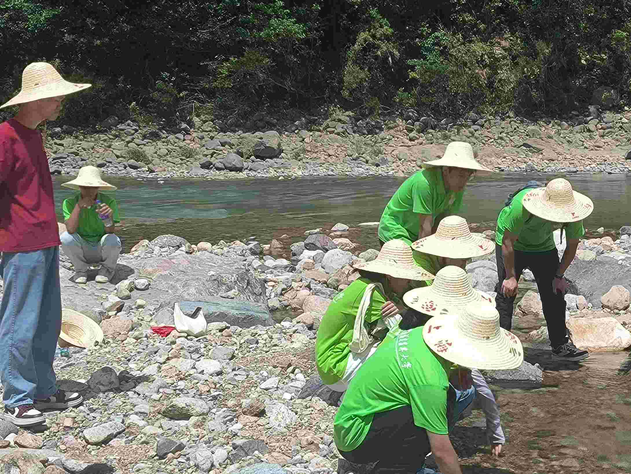 圖為實(shí)踐隊(duì)與政府代表考察玲瓏溪谷