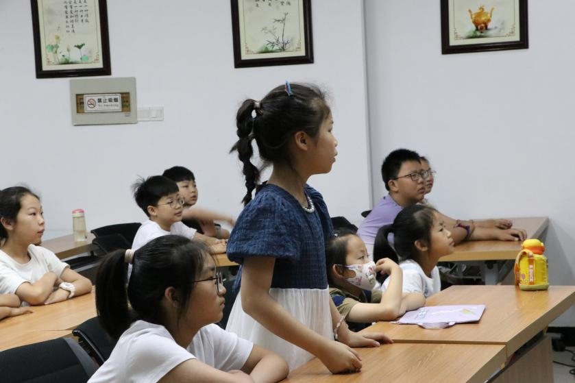 實(shí)踐團(tuán)隊(duì)的講解員用PPT為小朋友們講述了大運(yùn)河的悠久歷史、重要作用以及其所承載的豐富文化內(nèi)涵。從古代的漕運(yùn)繁忙到如今的文化傳承。為了讓小朋友們更好地理解大運(yùn)河文化,講解員還設(shè)置了互動(dòng)提問(wèn)環(huán)節(jié)。在我們隊(duì)員劉亞文的提問(wèn)后,小朋友們紛紛舉起小手,踴躍回答。有的小朋友雖然回答得不太準(zhǔn)確,但他們的積極參與和勇敢表達(dá)贏得了大家的掌聲鼓勵(lì)。實(shí)踐團(tuán)隊(duì)的成員們耐心地為小朋友們解答問(wèn)題,引導(dǎo)他們深入思考,進(jìn)一步加深了對(duì)大運(yùn)河文化的理解。