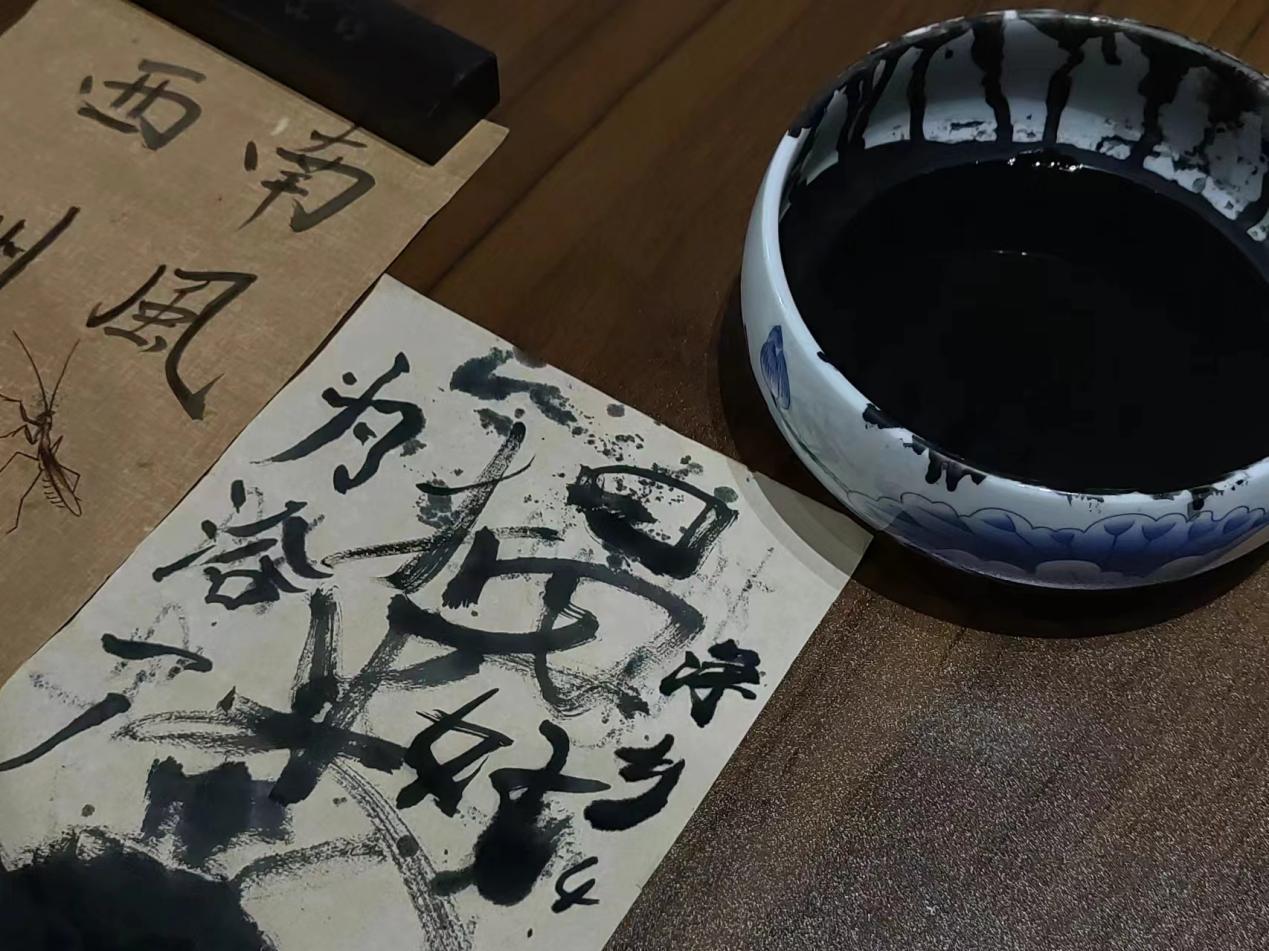 圖為凈鄉(xiāng)服務(wù)隊在西室、西庫、西廡參觀完展出的書法作品和館內(nèi)的《茅龍行草詩手卷》后,深受筆法震撼,在館內(nèi)書法區(qū)寫下的毛筆字。通訊員:李泰偉 供圖