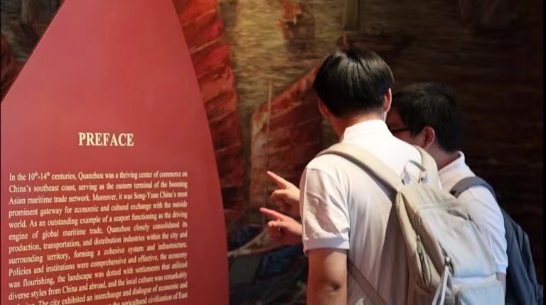 “一座海交館,半部泉州史。”實踐隊首先來到泉州世遺總展示館,深入了解古代悠久輝煌的海外交通歷史、海絲背景下各種經(jīng)濟(jì)、文化的交流往來。