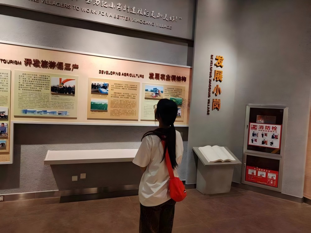 接著我們跟隨志愿者的腳步來(lái)到沈浩同志先進(jìn)事跡陳列館。沈浩,這位曾任小崗村黨支部書(shū)記的優(yōu)秀共產(chǎn)黨員,以其深厚的群眾基礎(chǔ)和不懈的奮斗精神,推動(dòng)了小崗村的發(fā)展,最終因病倒在了工作崗位上。紀(jì)念館內(nèi),沈浩同志的事跡展示讓同學(xué)們深刻感受到了一個(gè)共產(chǎn)黨員的為民情懷和奉獻(xiàn)精神。